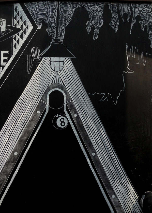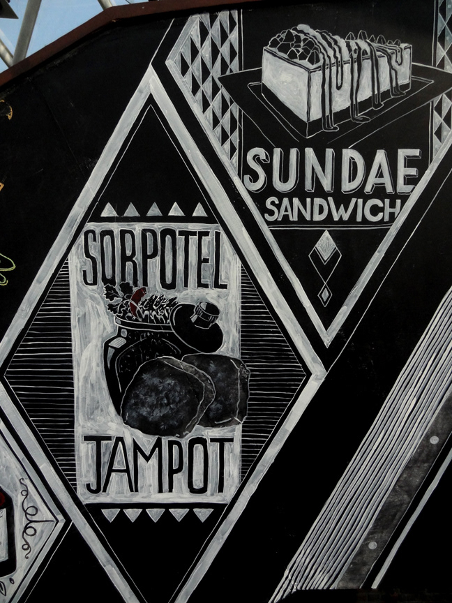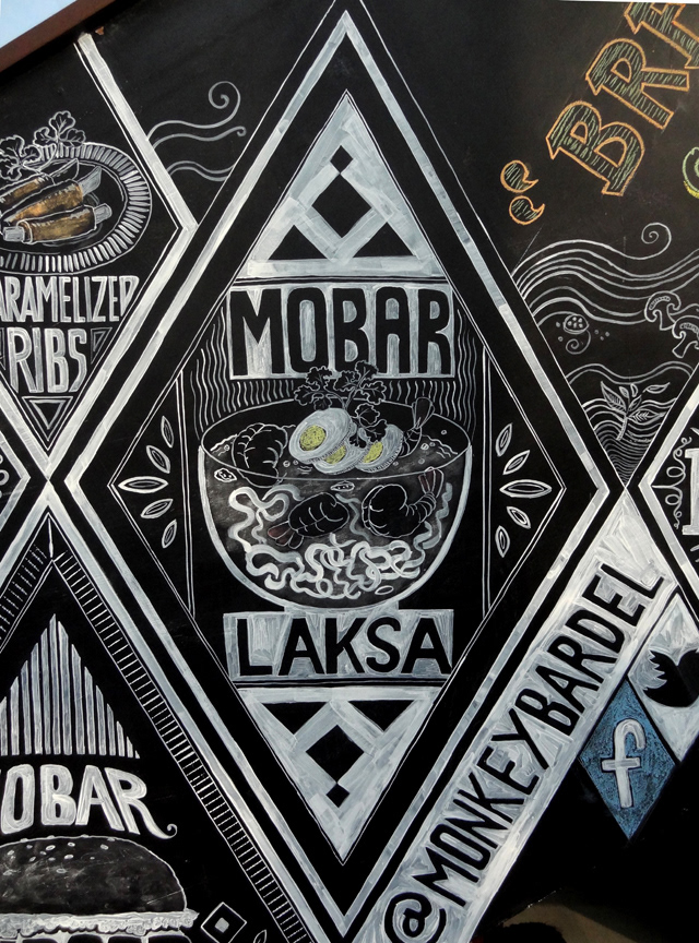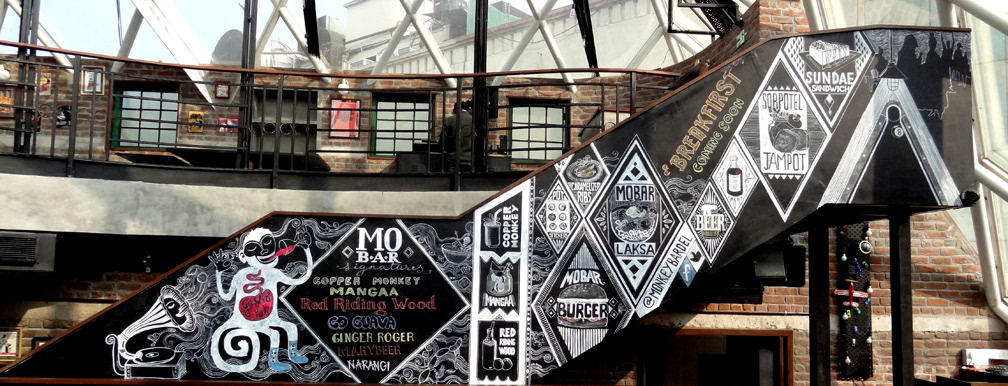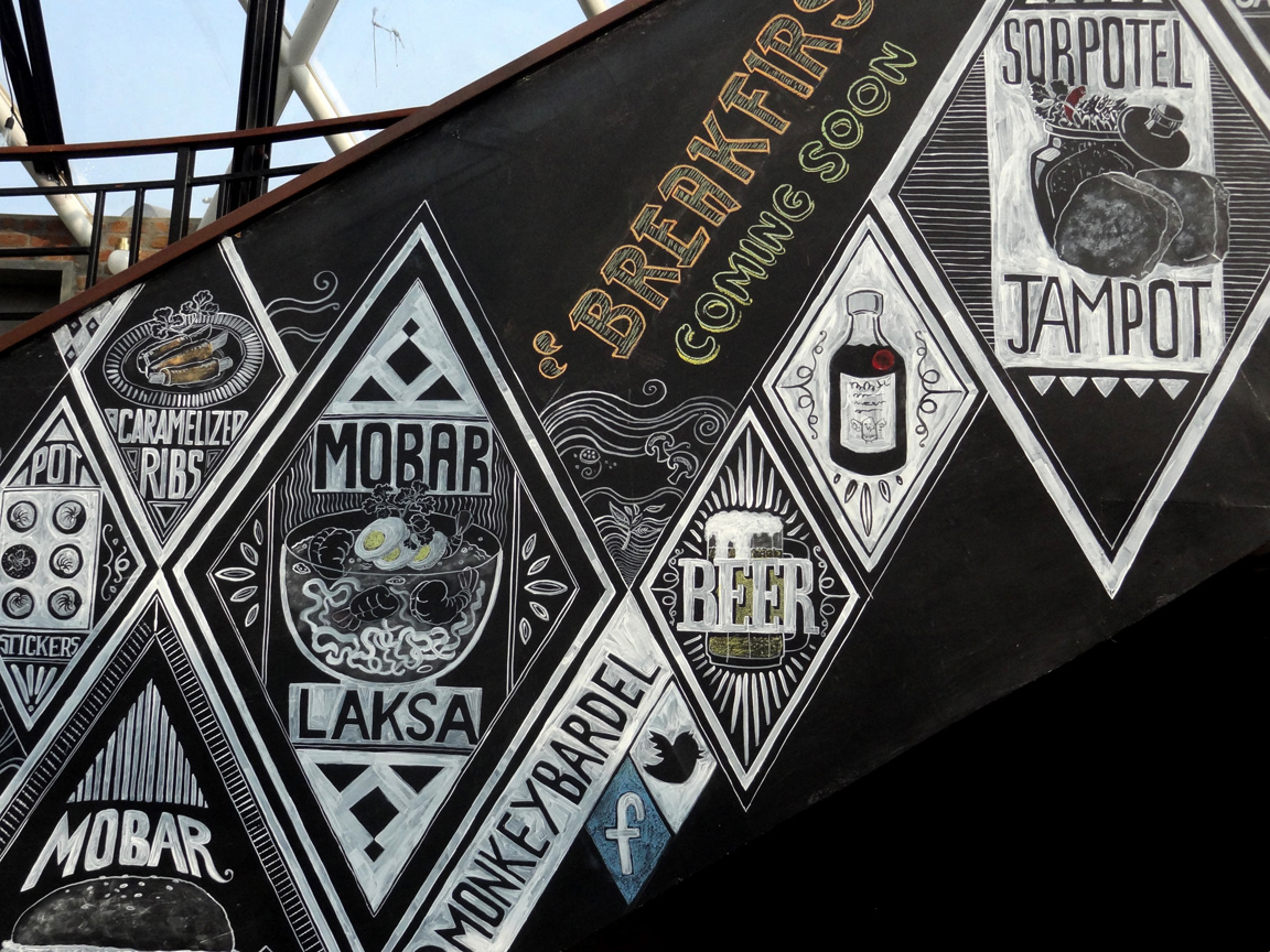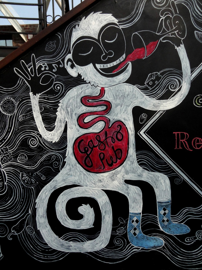 Illustrations done for Monkey Bar, a restaurant in New Delhi. Artwork done on a blackboard using acrylic paints and chalk.