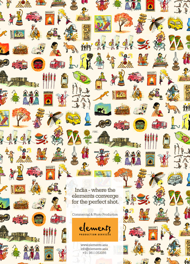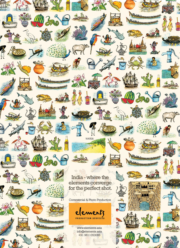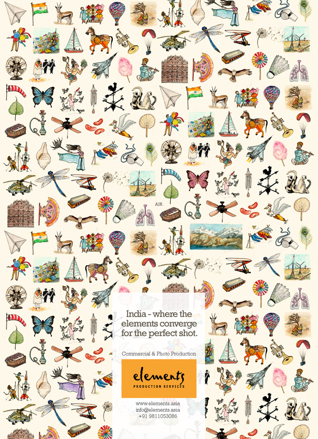 A magazine advertisement series created for 'Elements Production Services' A4 full page ads.