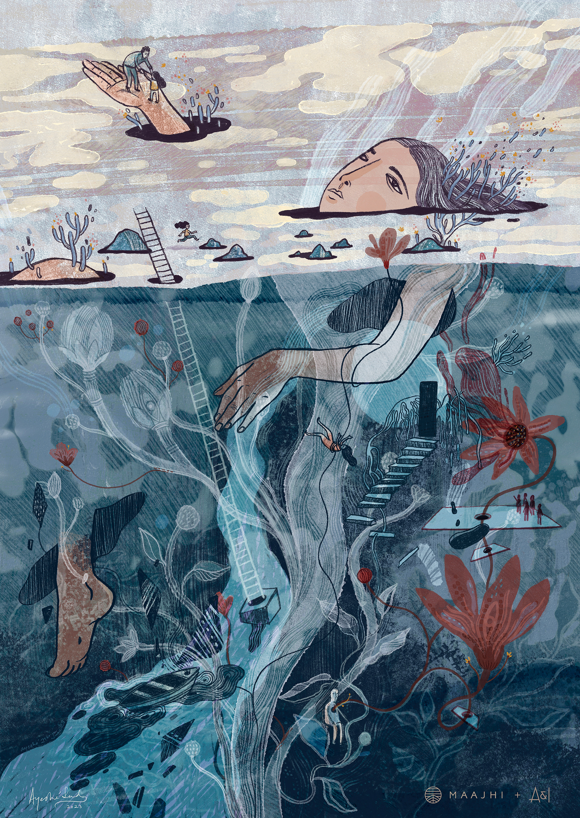 These works were created for Maajhi, a platform which is facilitates conversations about death, loss, aging and end of life care. These artworks were created as personal expressions of what grief and loss means to us.