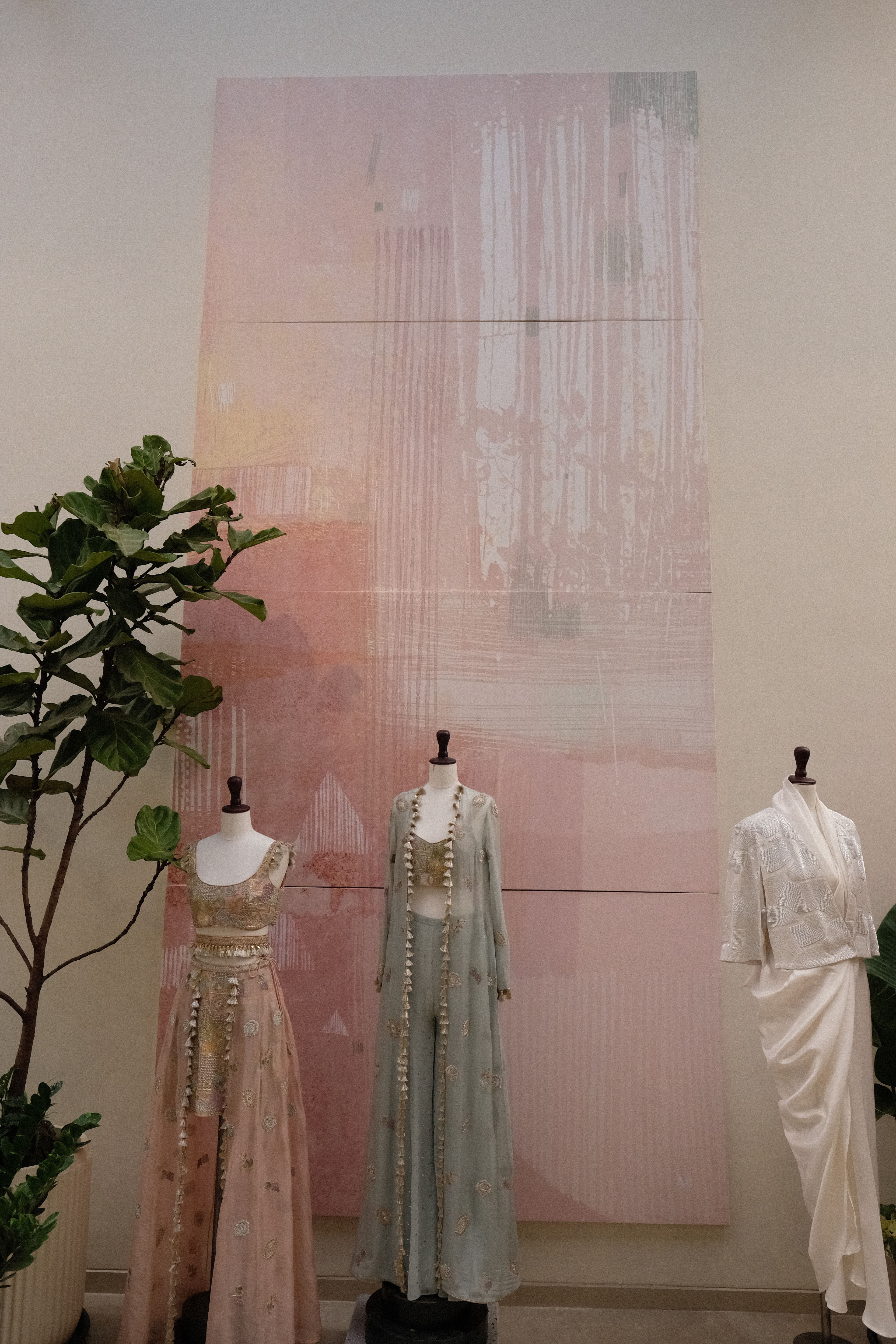 Large scale abstract paintings created for Ogaan, for their new store in Dhanmill, New Delhi. Digitally printed on canvas. Size ranging from 6 to 15 feet.
