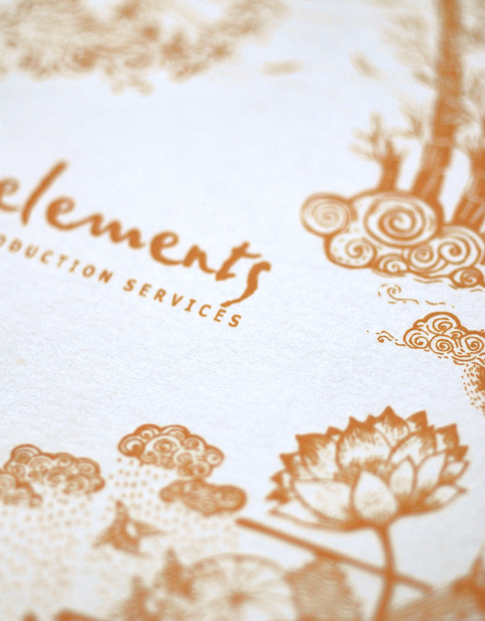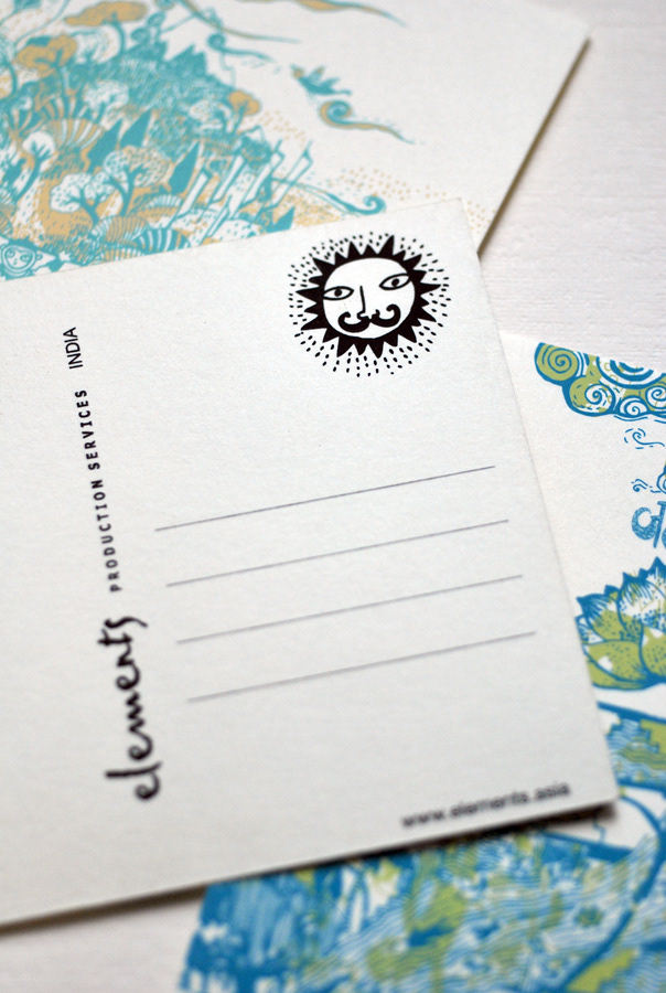 Postcards for 'Elements Production Services' 2 colour screen prints.