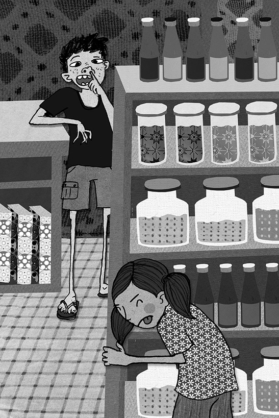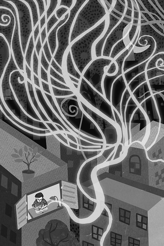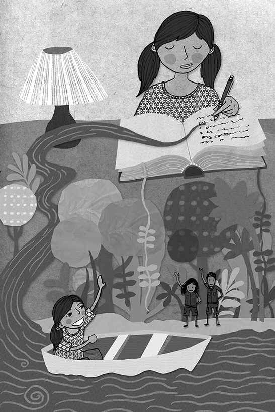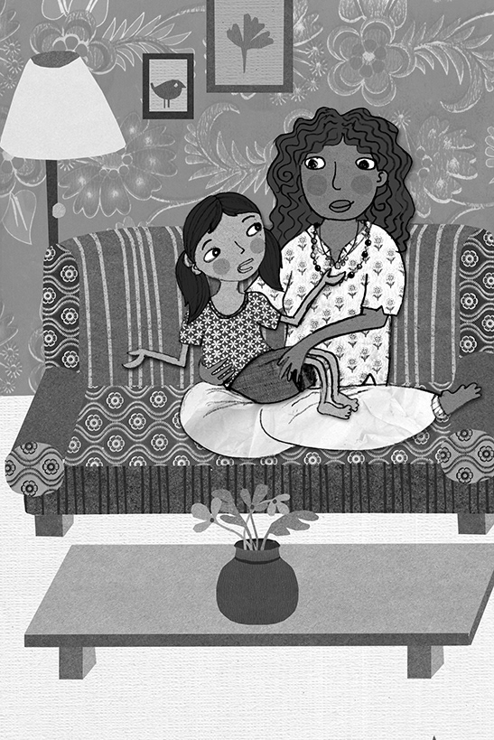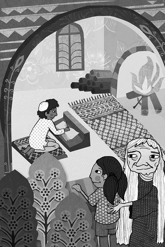 Created for a book titled "Suraya's gift" written by Malavika Nataraj, published by Penguin. These illustrations are black and white digital collages, using different textures and papers.